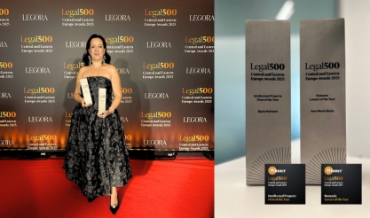 BACIU PARTNERS announced that Ana-Maria Baciu, Managing Partner, has been recognised as “Romania Lawyer of the Year”, becoming the first lawyer active in Romania to ever receive this distinction under the Legal 500 CEE Awards.At the same gala, BACIU PARTNERS was named “CEE IP Firm of the Year”, likewise being the first Romanian business law firm to receive this recognition in the inaugural edition.