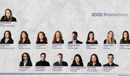 De asemenea, sunt promovați în poziția de Counsel: Camelia Ianțuc (Banking & Financial Services), Diana Gavra (Commercial – Regulatory & Contracts), Irina Suătean (Dispute Resolution), Liliana Dranca (Dispute Resolution), Mihnea Niculescu (Corporate and M&A), Roxana Diaconu (Corporate and M&A), Roxana Roșca (Commercial - Competition) și Simona Ungureanu (Corporate and M&A).