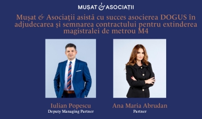 Mușat & Asociații anunță finalizarea cu succes a procedurii de atribuire și semnarea contractului de către DOGUS pentru un proiect de infrastructură de importanță strategică pentru București – extinderea magistralei de metrou M4. Echipa coordonată de Iulian Popescu, Deputy Managing Partner si Ana Maria Abrudan, Partner, a reprezentat clientul pe tot parcursul procedurii, inclusiv în fața Consiliului Național pentru Soluționarea Contestațiilor (CNSC), unde soluția favorabilă a confirmat atribuirea contractului în favoarea DOGUS.