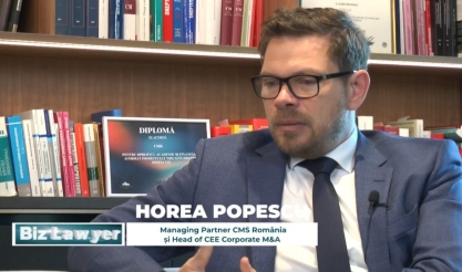 VIDEO-INTERVIURI ESENȚIALE | Horea Popescu, Managing Partner CMS Romania și Head of CEE Corporate M&A: De când coordonez practica de fuziuni și achiziții în CEE, este pentru prima dată când numărul tranzacțiilor din România este cel mai mare din regiune după primele nouă luni. A fost un an interesant din perspectiva private equity, însă investitorii strategici rămân în continuare cei de bază. Toate ariile de practică au fost foarte ocupate, dar finanțările și departamentul de Banking, cu mandate ce însumează 3 miliarde euro, ”poartă coroana” anul acesta